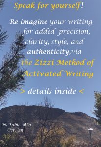 And I think about the writing system I developed, as a theorist of language who teaches communication (especially speech, rhetoric, and writing). My system, which I have named, “The Zizzi Method of Activated Writing,” presents fresh, understandable, and powerful resources to the writer-to-be (better, at least). This system transformed a great many college students from weak at writing (or hating it) to loving it and suddenly getting A’s on everything.